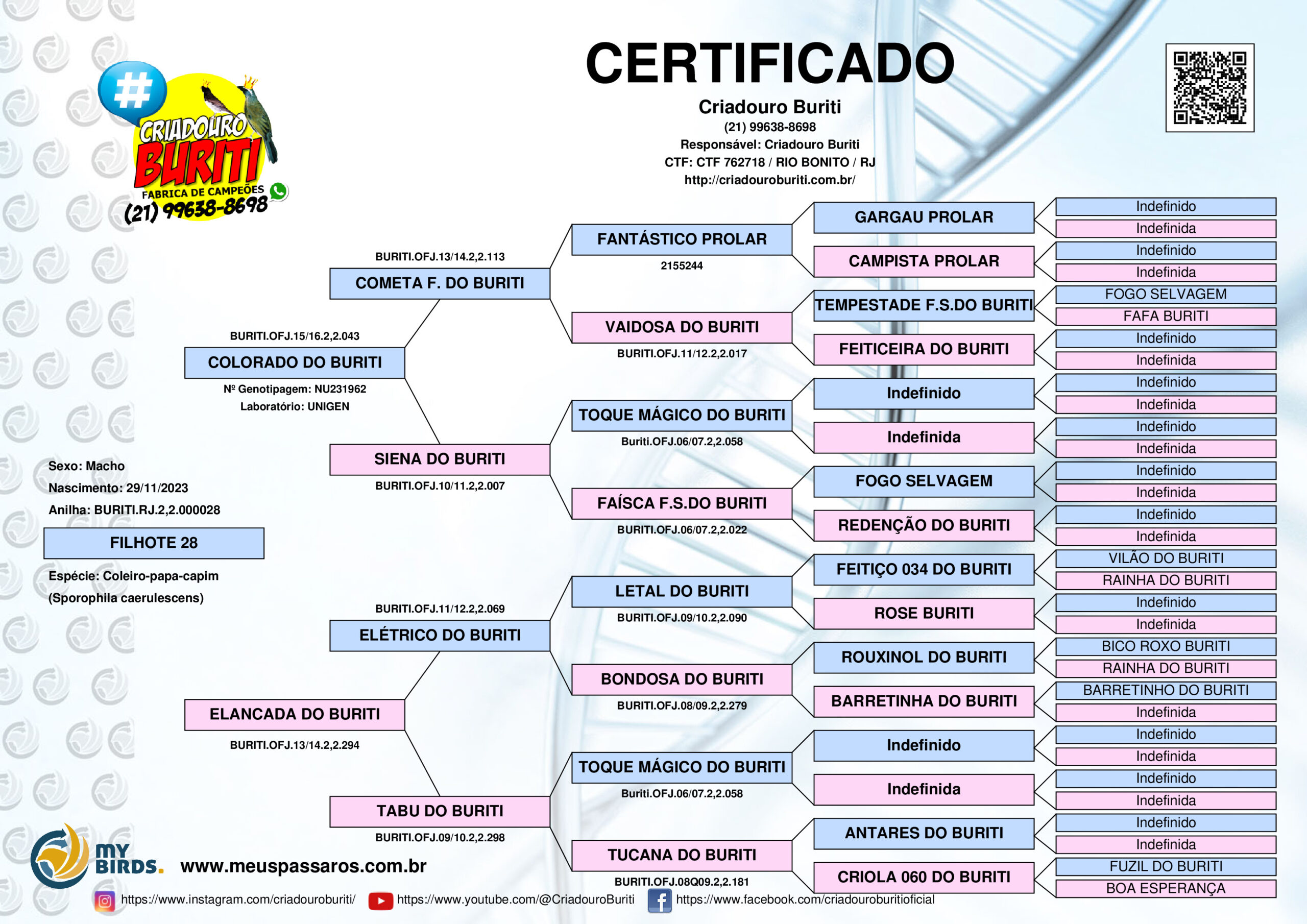 CONFIRA A ÁRVORE GENEALÓGICA DA AVE